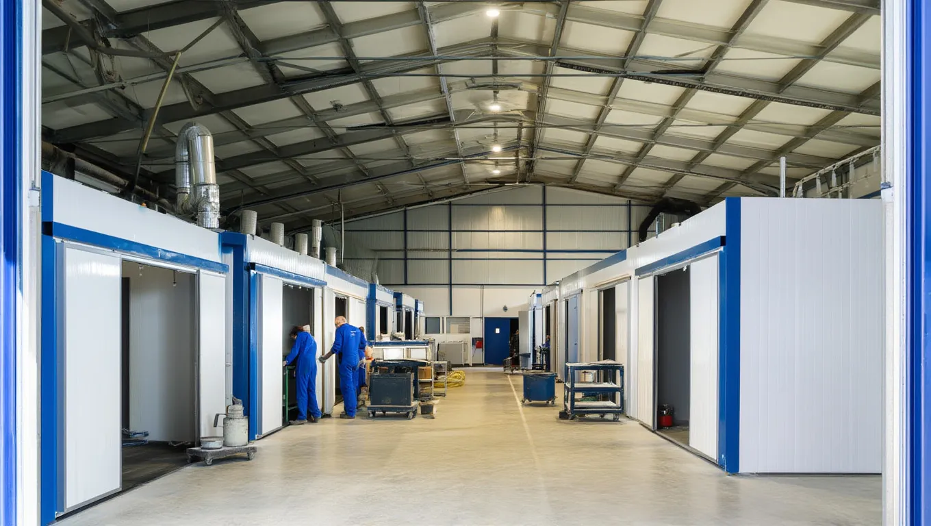 Обустройство линии порошковой окраски для металлических деталей и конструкций. Ангар обеспечивает необходимую герметичность и температурный режим для полимеризации покрытия. Предусмотрено место для подготовки изделий и контроля качества окраски.