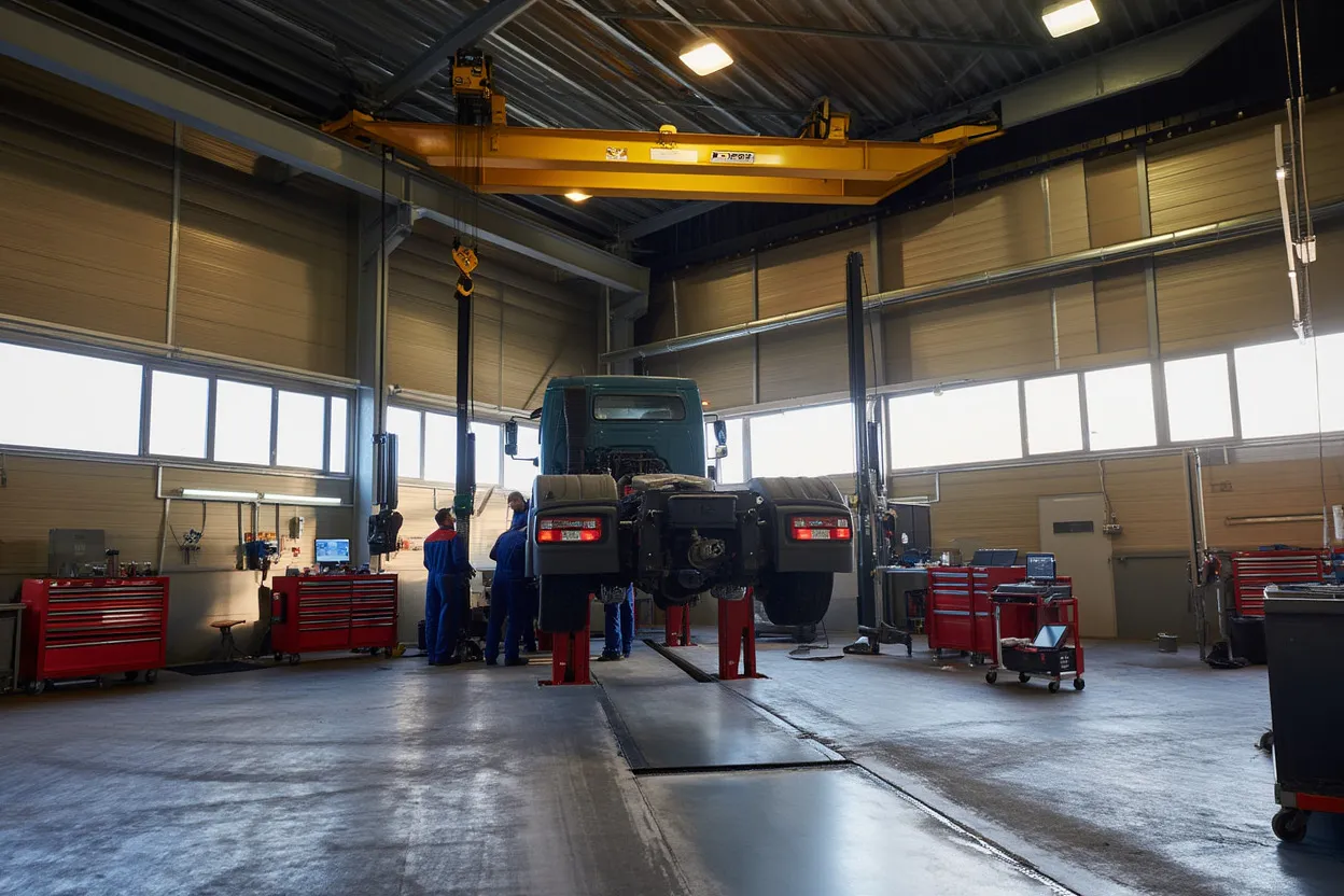 Оснащение линиями компьютерной диагностики, тормозными стендами и оборудованием для регулировки углов установки колёс. Идеально для гарантийного обслуживания и технического осмотра коммерческого транспорта.